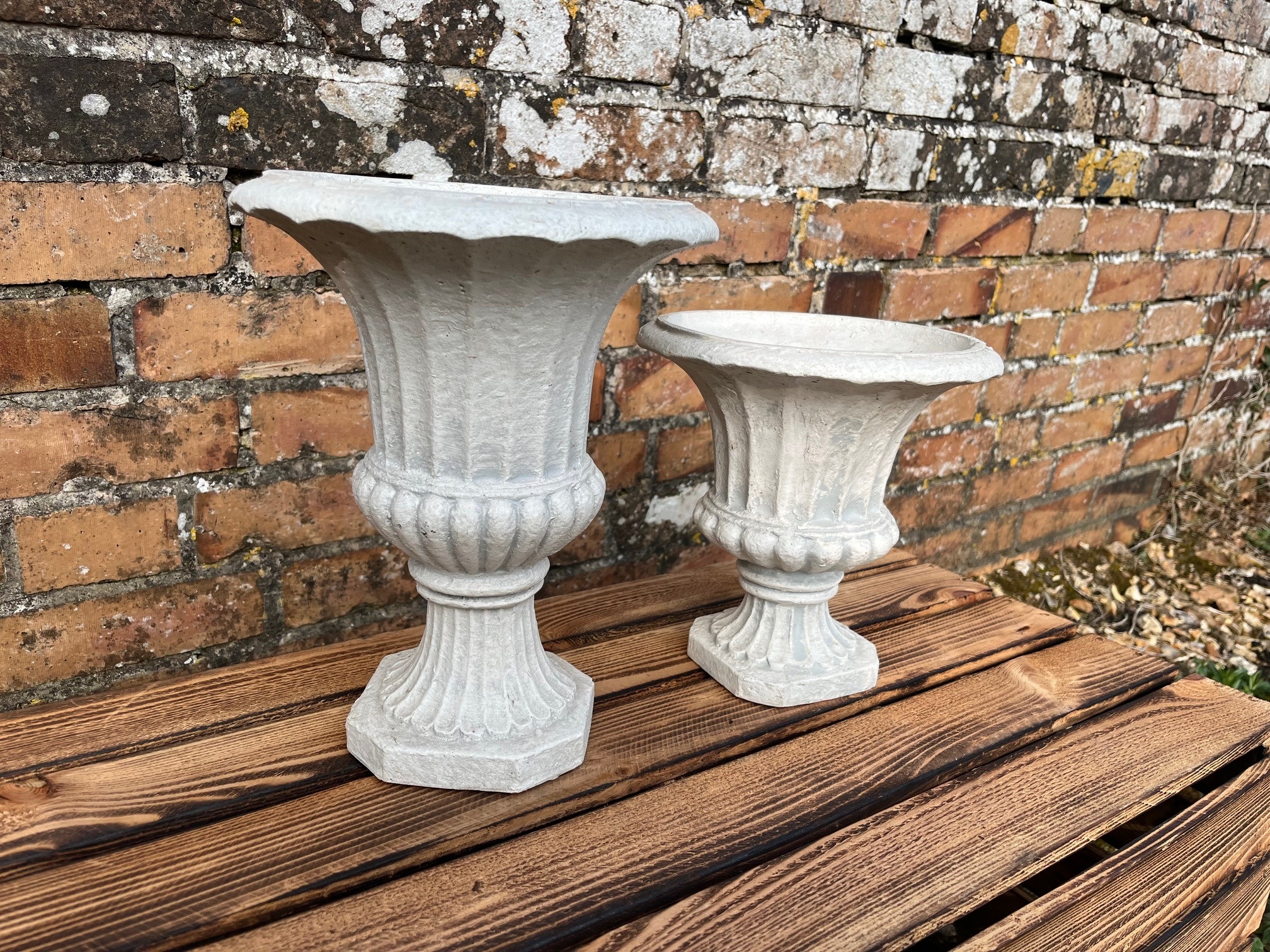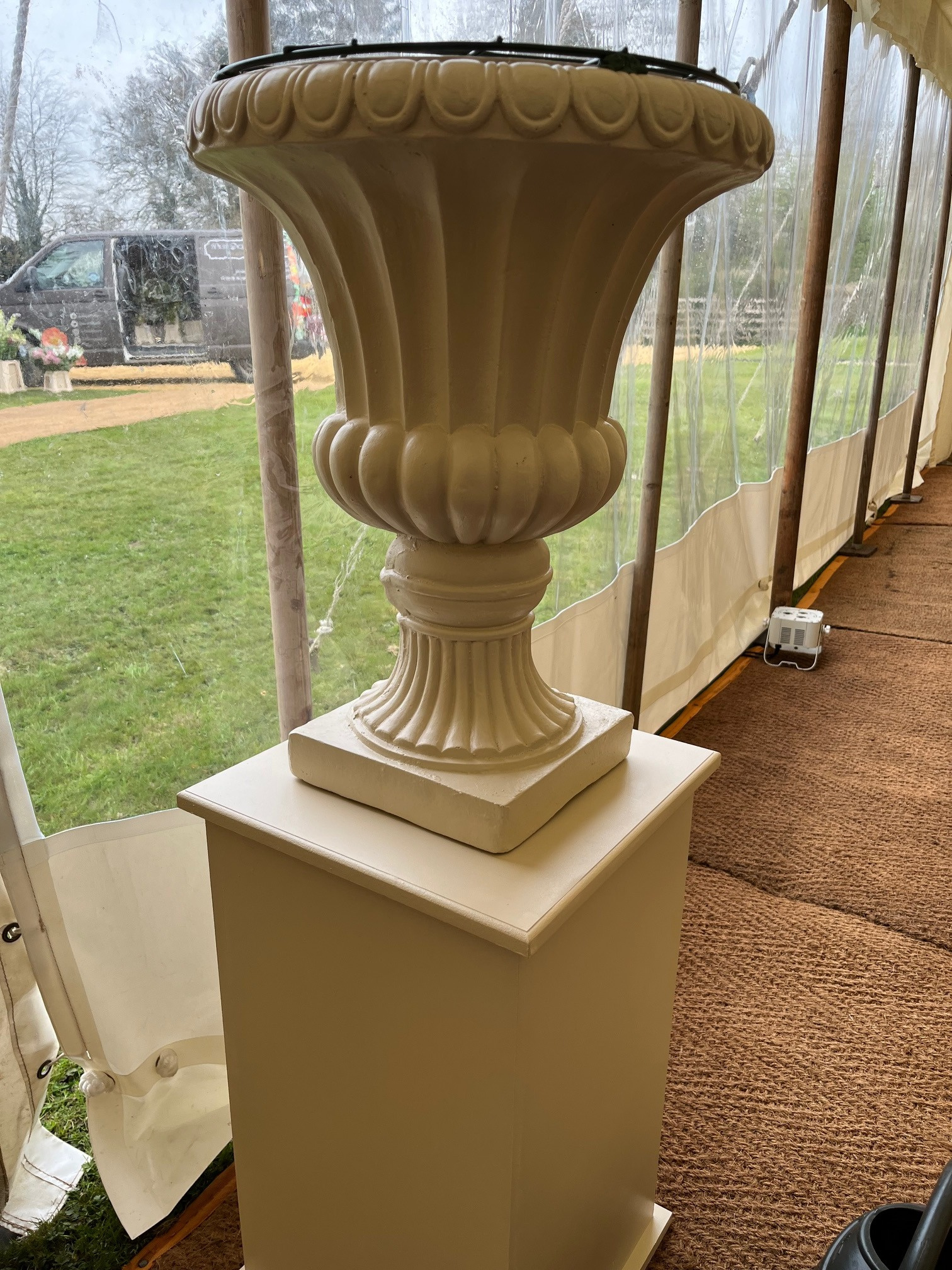 Quantity: 2 sets (urn with plinth)Size: Urn 46cmH x 30cmdia, Pedestal 80cmH x 30cmsq